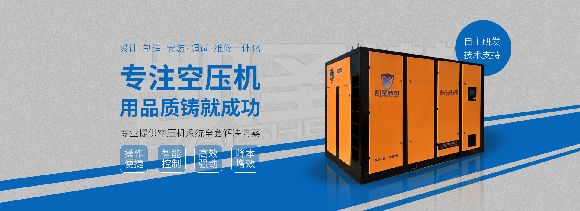 合肥凱圣節能科技有限公司是從事永磁變頻螺桿壓縮機系統的設計、制造、安裝、調試、維修與一體的公司。 在多年的螺桿空壓機研發與推廣歷程里,凱圣聚集和培養了大量壓縮機技術設計和管理人員,迅速發展成為集研究、生產、銷售、服務等環節為一體、嚴格按照標準執行的企業,公司成立開始,即以滿足客戶的實際需求為己任,大力開拓國內外節能型空壓機市場,并始終保持創新精神,全力研發更為節能的螺桿式空壓機,努力站在空壓機節能領域的排頭位置。 應用范圍:公司產品廣泛應用于機械、輕工、紡織、食品、石油、化工、冶金、礦山、電力、城建、醫學研究和科研等各行業中,將為節約能源做出巨大貢獻。公司秉承“信譽至上,...